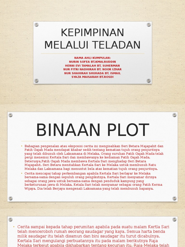 Sinopsis kisah bermula apabila seri betara majapahit berbincang dengan patih gajah mada untuk menewaskan melaka setelah kematian penjurit tujuh bersaudara. Tingkatan 5 kepimpinan melalui teladan semua hasil curi yang telah disimpan di bukit cina oleh kertala sari berjaya ditemui. Tauladan yang ditunjuk oleh pemimpin untuk dicontohi dan diamalkan oleh setiap lapisan masyarakat. Trusted by over 1 million members. Kepimpinan melalui teladan by hana roxstar 58192 views.