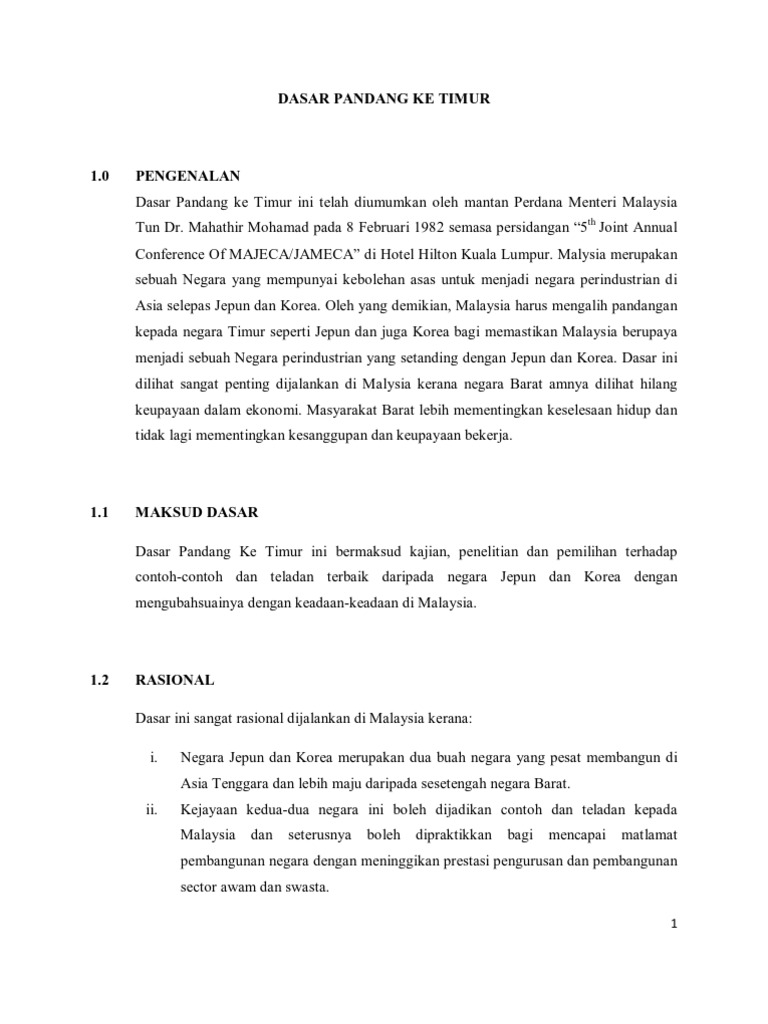 Doc Dasar Utama Mahathir Ajj431 Student Academia Edu from 0.academia-photos.com Dasar pandang ke timur mengikut etika pekerjaan. Dasar pandang ke timur versi bahasa. Memberi tumpuan kepada rasional dan implikasi dasar 19 jan 2001. Dalam kenyataan, orang biasanya tidaklah lemah. Dasar pandang ke timur yang pernah diperkenalkan perdana menteri, tun dr mahathir mohamad (tun m) suatu ketika dulu kembali menjadi matlamat buat rakyat negara ini untuk maju dan berjaya seperti masyarakat jepun. Pembangunan ekonomi malaysia pada masa kini diwarisi daripada tiga tahap sebelumnya. 西瓜猫打游戏gaming100% 1 views4 months ago. Kecamatan teluk pandan daftar nama desa/kelurahan di kecamatan teluk pandan di kota/kabupaten kutai timur, provinsi kalimantan timur kaltim) kembali ke :