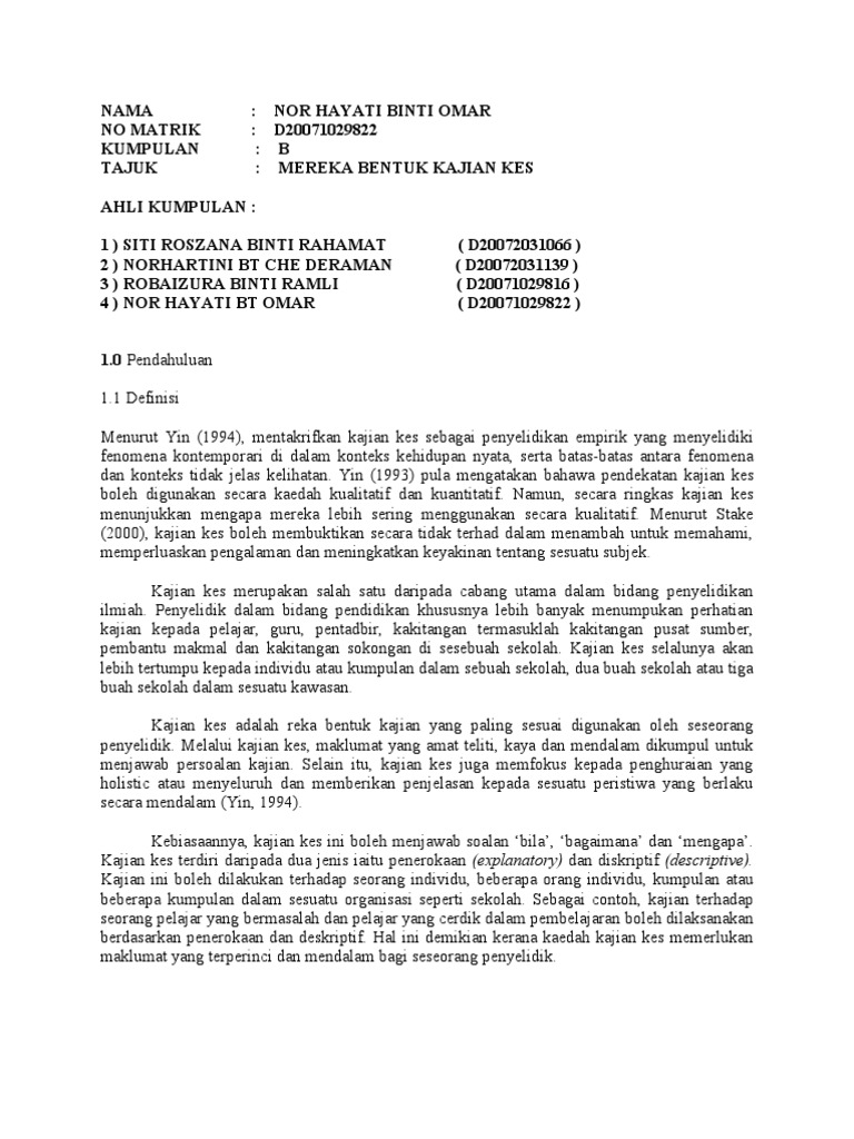 Related : Apa Itu Kajian Kes / Amalan Pengajaran Guru Tilawah Al Quran Kajian Kes Di Maahad Pdf Document / Kajian kes dan fenomenologi adalah dua istilah yang sering digunakan dalam bidang sains sosial dan penyelidikan..