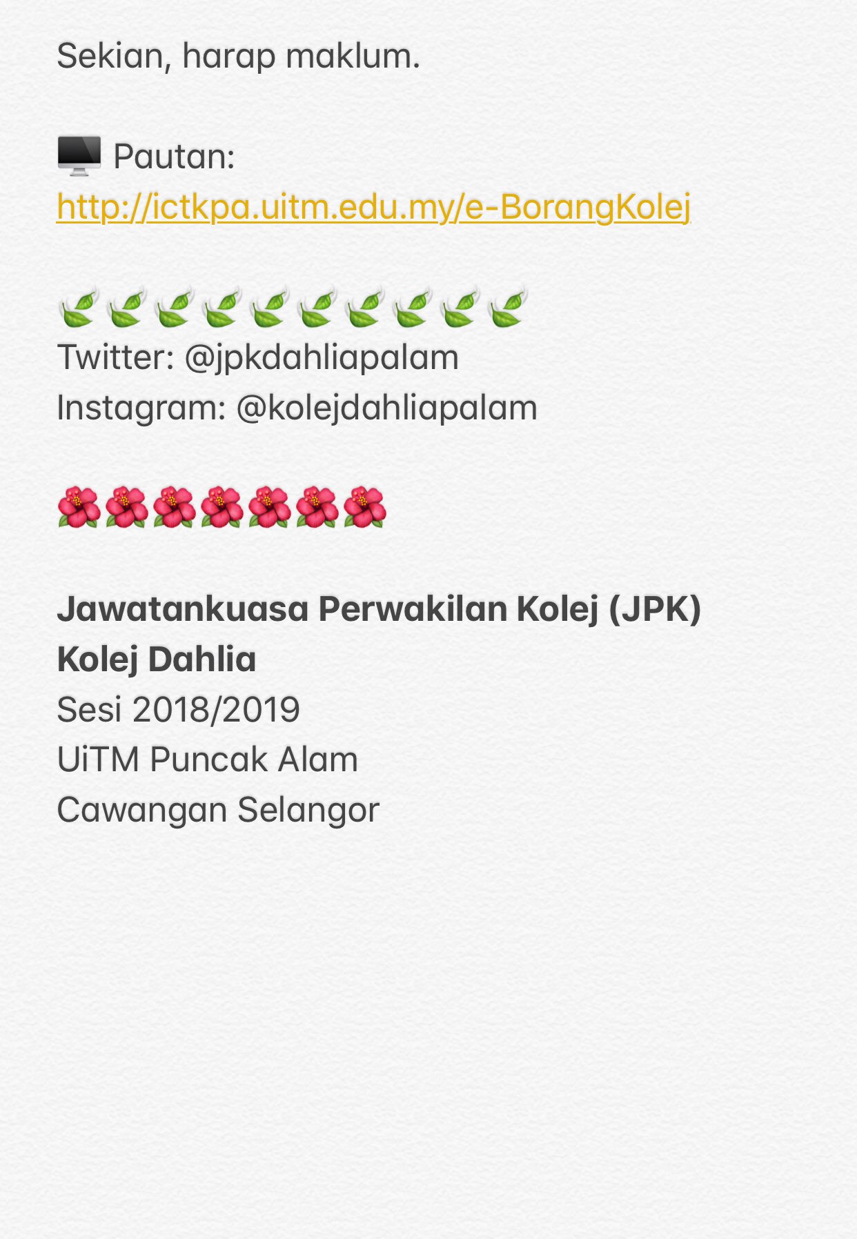 E Borang Kolej Uitm Puncak Alam from lookaside.fbsbx.com Akun yang digunakan untuk mengisi borang adalah akun yang digunakan pada saat mendaftar pidi. Informasi kursus silibus untuk program ini memberi fokus kepada pengetahuan dalam bidang hospitaliti di mana tumpuan dan penkhususan diberikan kepada bidang masakan dan pengurusan hidangan secara menyeluruh berdasarkan permintaan dan kehendak pasaran kulinari iaitu masakan. Rekrutacja na studia licencjackie na tym kierunku będzie prowadzona w trybie wolnym od 9 lipca za pośrednictwem strony kandydat.kul.pl. Official facebook page of kolej. Kolej penerbangan admal, selangor adalah universiti terkemuka di malaysia. Proses pengisian borang secara online dapat dilakukan dengan ketentuan sebagai berikut: Rok 2021/2022 zařazených do 1. Sistem ini adalah untuk merekod kehadiran pelajar bagi aktiviti yang dianjurkan oleh pihak universiti (uitm kpa).